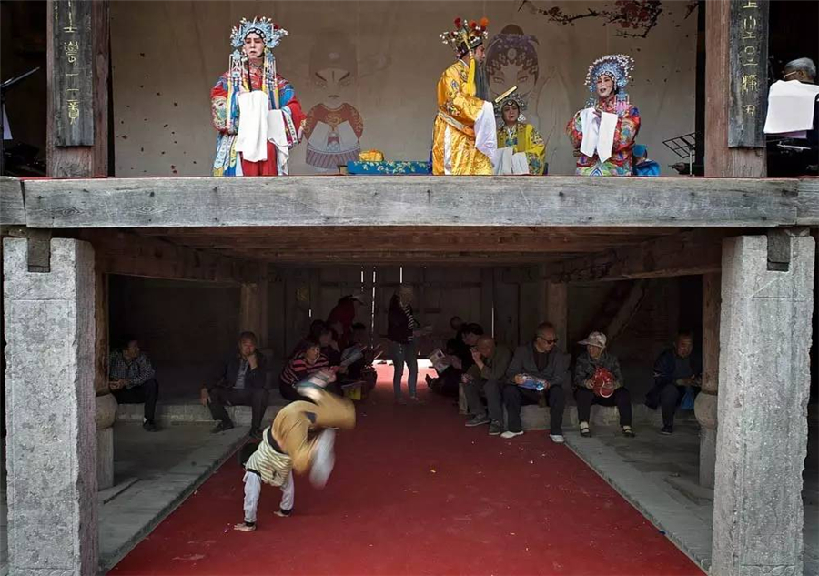 2016年4月24日,山西万荣,台上台下两出戏。