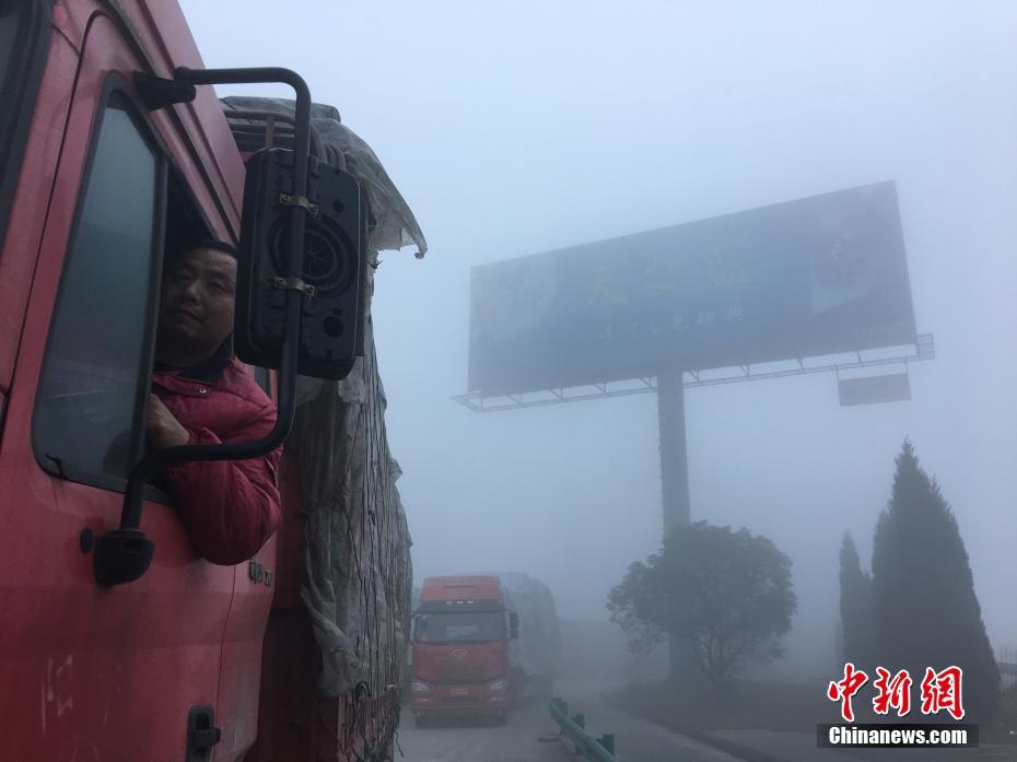 1月3日,受大雾天气影响,高速封闭。安徽省气象台2017年01月02日23时20分将大雾预警信号由黄色提升为橙色。6小时内全省大部分地区可能出现能见度小于500米的雾,其中江北部分地区将出现能见度小于200米的雾,局部地区能见度将小于50米。中新社记者韩苏原 摄
