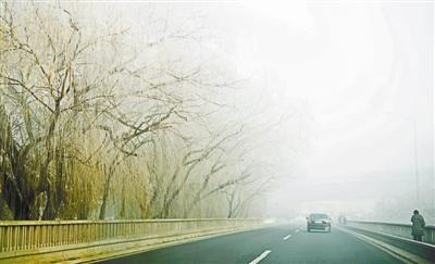 京沪高速十里河桥上,路旁树上结满树挂 摄影/本报记者王晓溪