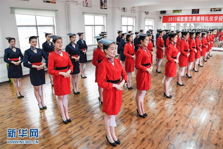 1月4日,欧雅空乘模特礼仪学校空乘专业的考生头顶书、腿夹纸进行站姿练习。新华社记者 李博 摄 图片来源:新华网
