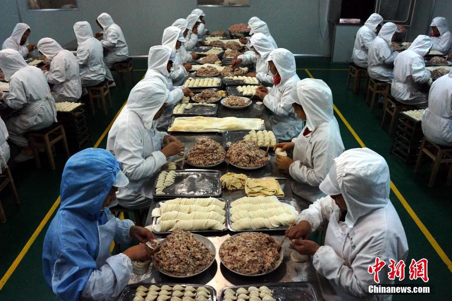 不到5秒时间,拣皮、挑馅、掐花,一气呵成,一只个头饱满的饺子就呈现在眼前。1月8日,在江西省万载县高城镇一家专业生产手工饺子的食品厂内,数十位女工正忙碌着生产。工厂负责人辛增平告诉记者,工厂每月生产手工饺子约20万斤,女工们每天工作十小时,每人每天手工包出4000只饺子。王昊阳摄