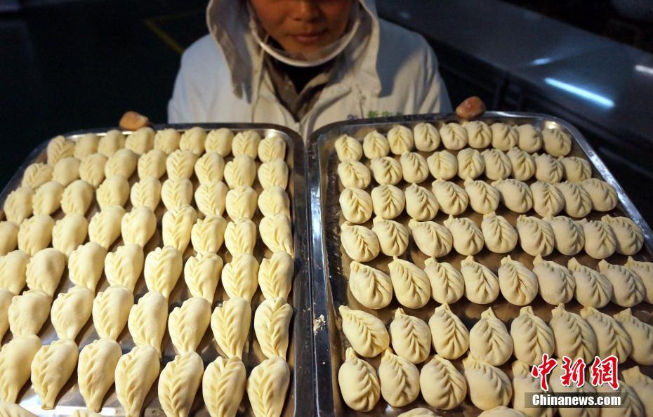 不到5秒时间,拣皮、挑馅、掐花,一气呵成,一只个头饱满的饺子就呈现在眼前。1月8日,在江西省万载县高城镇一家专业生产手工饺子的食品厂内,数十位女工正忙碌着生产。工厂负责人辛增平告诉记者,工厂每月生产手工饺子约20万斤,女工们每天工作十小时,每人每天手工包出4000只饺子。王昊阳摄