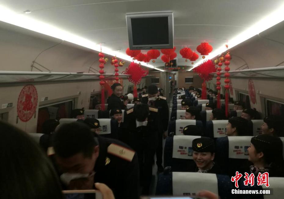 春节临近,1月9日下午,郑州客运段高铁一队干部职工进行春运前应急演练,60余名“高哥”、“高姐”在热备车箱展示了应急技能大提升、服务礼仪、反恐技能提升等应急措施,目的是全力保障平安春运、有序春运、温馨春运。刘鹏摄