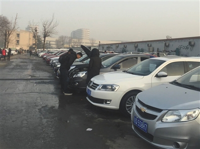 亚运村汽车交易市场中租赁京牌是众多商家的一项生意。新京报实习生杨砺 摄