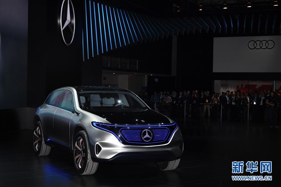 这是1月9日在底特律举行的北美国际汽车展上拍摄的奔驰电动概念车EQ。一年一度的北美国际汽车展9日在美国底特律拉开帷幕。多款纯电动车、插电式混合动力车等节能型汽车亮相,成为本次车展的一大亮点。新华社记者殷博古摄