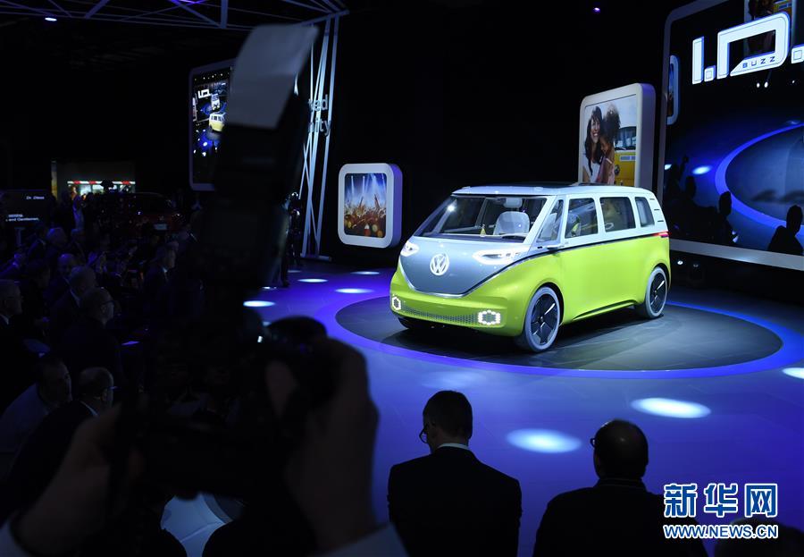 1月9日,在美国底特律举行的北美国际汽车展上,大众发布Buzz电动概念车。一年一度的北美国际汽车展9日在美国底特律拉开帷幕。多款纯电动车、插电式混合动力车等节能型汽车亮相,成为本次车展的一大亮点。新华社记者殷博古摄