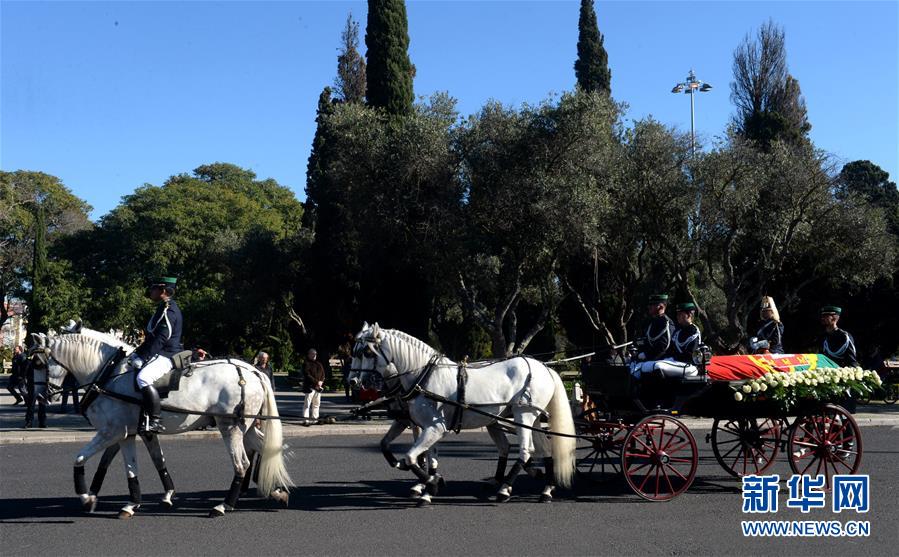 1月9日,在葡萄牙首都里斯本,葡萄牙前总统苏亚雷斯的灵柩抵达热罗尼姆斯教堂。据葡萄牙卢萨通讯社报道,葡萄牙前总统苏亚雷斯7日下午在首都里斯本红十字医院逝世,享年92岁。葡萄牙将于10日为苏亚雷斯举行国葬。葡萄牙政府宣布从9日开始举行为期3天的全国哀悼。新华社记者张立云摄