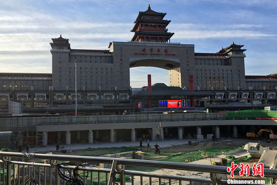 1月10日,北京西站北下沉广场进行最后阶段施工,1.5万平方米的广场将于近日完工,投入春运客流疏导中。该下沉广场是建站20年来最后一个“甩尾工程”,建成后每天可疏解上万旅客、减少地面拥挤现象。中新网记者 金硕 摄