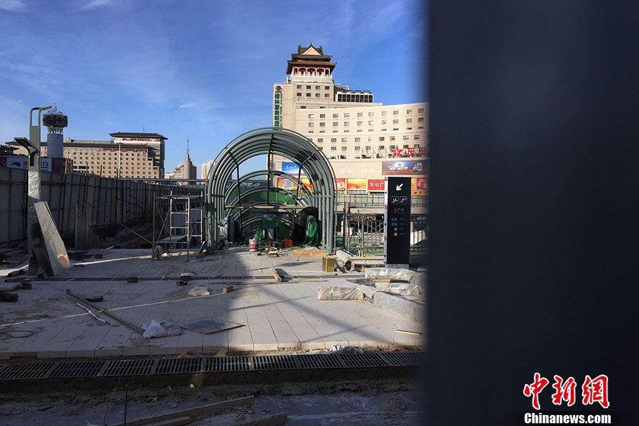 通过下沉广场,往东可进入中裕大厦,往西可以进入瑞海大厦,往南可进入北京西站地铁站,往北可通往军博、中华世纪坛。打通北广场四方通行能力。中新网记者 金硕 摄