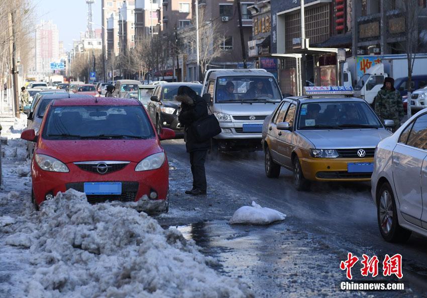 长春管道爆裂结冰 路边车变成“大冰雕”