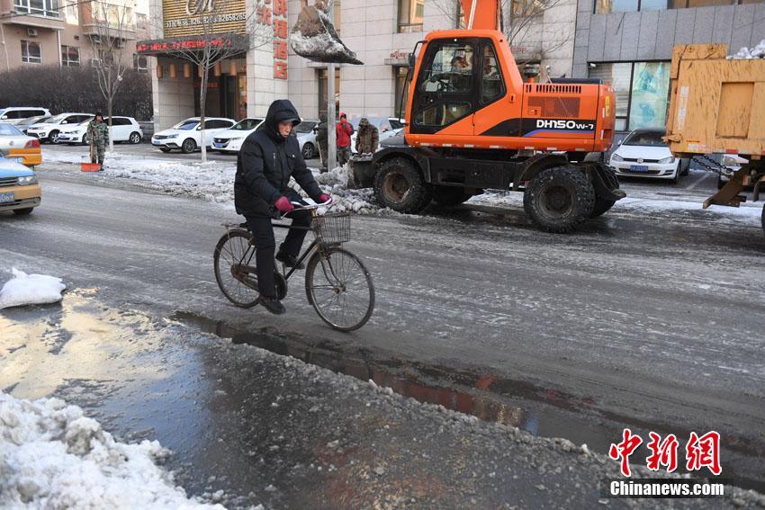 1月10日,在长春市和顺街上,一管道爆裂,喷出大量的水,导致停靠在路边的车辆的车身、轮胎被冻住,无法行驶,宛如一个个“大冰雕”。张瑶 摄