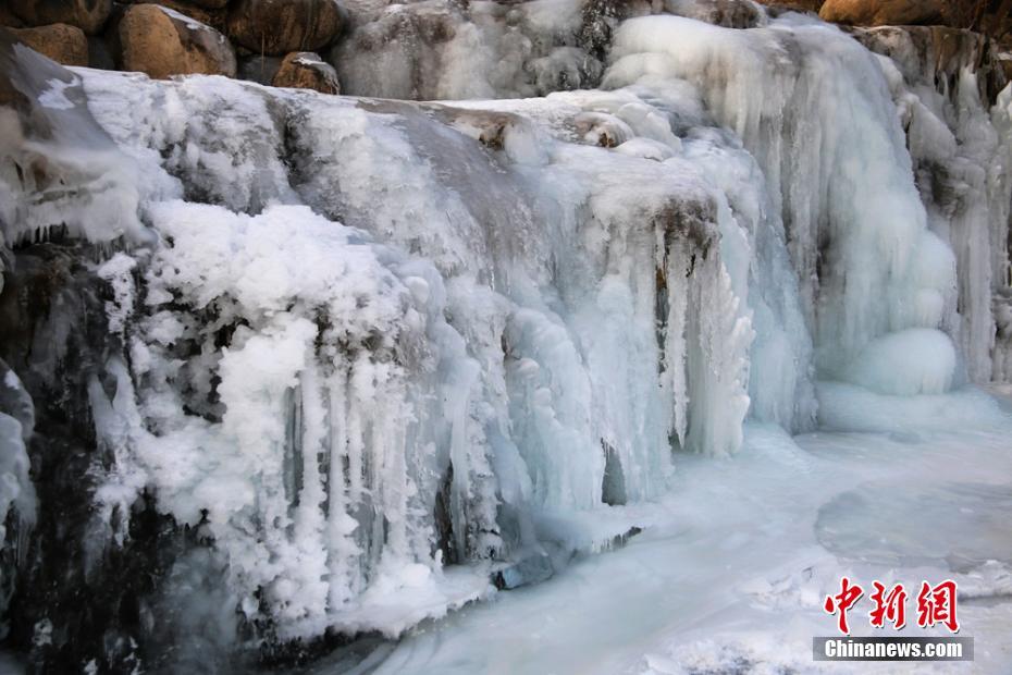 甘肃戈壁“三九”寒天现冰瀑美景