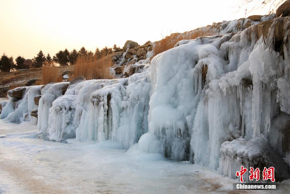甘肃戈壁“三九”寒天现冰瀑美景