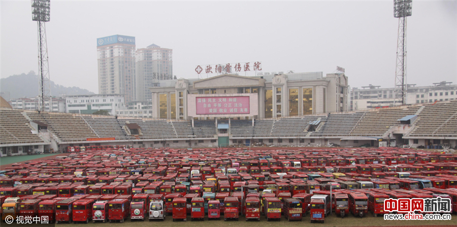 近日,江西省宜春市开展非法载客厢式电动三(四)轮车取缔工作,通过政府收购的方式已取缔934辆。从1月10日起城区规定区域内禁止非法载客厢式电动三(四)轮车通行、停放及运营,加强道路交通安全管理,规范客运市场秩序,改善交通环境。邹海斌/视觉中国