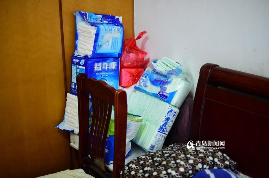 房间的角落里堆放着大量成人尿不湿。文/于泓 摄影/孙志文 图片来源:青岛新闻网