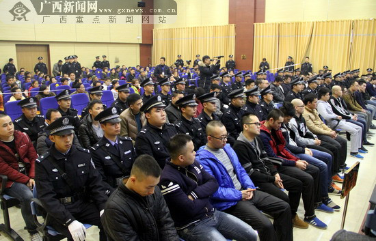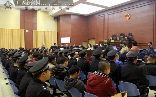 10日上午,河池市大化瑶族自治县人民法院在宜州一审宣判马振文等44人重大涉黑犯罪案。该犯罪团伙主要头目马振文、李苹峰分别获刑25年、22年,并分别被处罚金人民币11万元、8.5万元,没收财产各50万元。黄仲翔等其他42名被告人分别被判处20年至10个月不等有期徒刑。据悉,这是至今为止河池法院有史以来审理的被告人人数最多的一起涉黑案件。