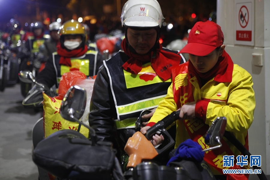 图为中国石油为返乡铁骑全程免费加油。