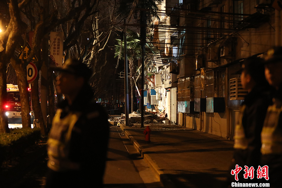 1月11日20时53分,上海市公安局指挥中心接110报警,杨浦区控江路398号一幢四层楼房二楼、三楼的外立面坍塌。接报后,公安、消防、燃气、120等单位迅速到场处置。现场一名居民受伤送医,无生命危险。经初步了解,事故疑似天然气泄露引发。受事故影响的居民均已疏散并妥善安置。现场处置工作仍在进行中。中新社记者 张亨伟 摄