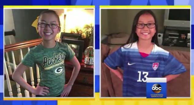 被两个美国家庭收养的中国孪生姐妹首次见面