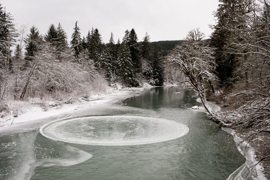 美国一河面现直径16米"旋转大冰盘"