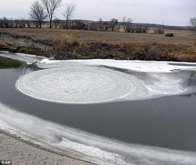 美国一河面现直径16米"旋转大冰盘"