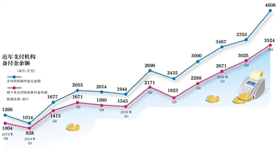 据央行介绍,目前,支付机构将客户备付金以自身名义在多家银行开立账户分散存放,平均每家支付机构开立客户备付金账户13个,最多的开立客户备付金账户达70个。截至2016年第三季度,267家支付机构吸收客户备付金合计超过4600亿元。