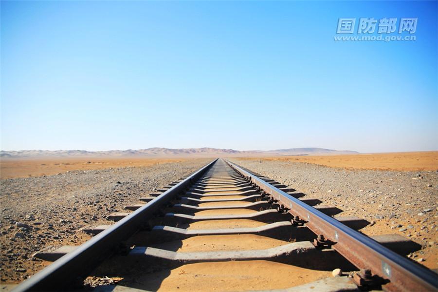胡杨都无法生存的地方,有一群筑梦人。茫茫大漠,除了一望无际的荒凉,常年与大漠为伴的是一条连接酒泉卫星发射中心与外界联系的铁路,以及常年驻守在铁路沿线旁的官兵,这条铁路也是我国目前唯一的一条军管铁路。在通往中国酒泉卫星发射中心的公路未通车前,铁路是到达发射中心的唯一途径。叶旺明 张晓辉 刘辉产 亓创 摄 图片来源:国防部网