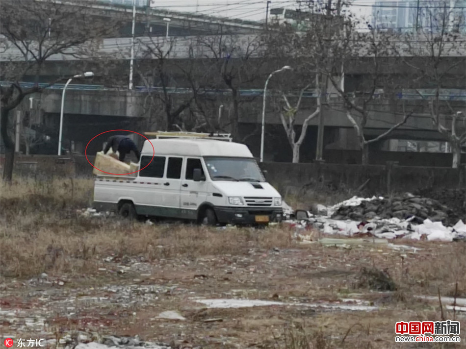 只见远方开来了一辆疑似城管车辆,开到一处垃圾堆积不多的地方停了下来,车牌号“苏Ay8088”下来三个身穿城管制服的人,车后堆积了很多废弃物,其中两人上车把车后垃圾向下扔,看到笔者不像拾垃圾的,其中一个城管队员盯着笔者,致使笔者无法拍到这几位“真神”十分钟后,垃圾倾倒完了,他们随后上车离开,笔者过去查看,有一组坏沙发,一个床垫,还有一些乱七八糟的东西。(行走南京/东方IC)