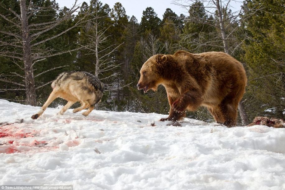 血红的牙齿和利爪:狼群为保护猎物与熊开战