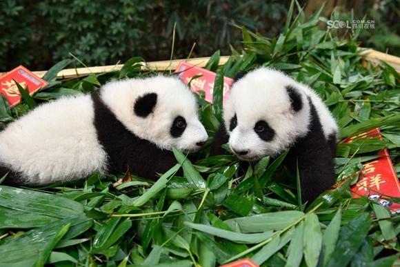熊猫宝宝集体亮相 提前向全国人民拜年