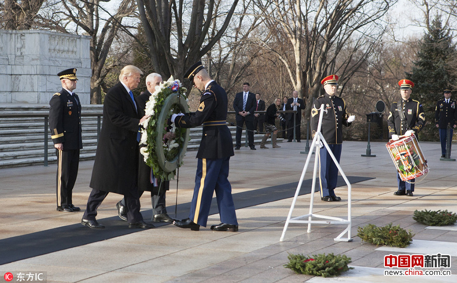 就职典礼前夕 特朗普前往阿灵顿公墓敬献花圈