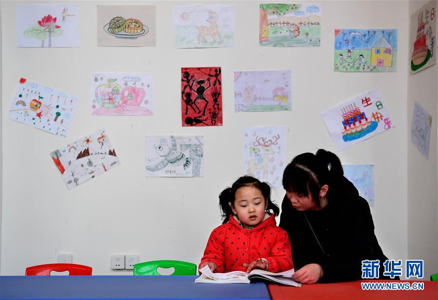 1月19日,村民带着孩子在河南省孟州市莫沟村老苗窑洞书馆的少儿阅览室内看书。新华社记者 李安 摄
