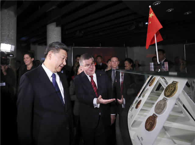 2017年1月18日,国家主席习近平在瑞士洛桑国际奥林匹克博物馆会见国际奥林匹克委员会主席巴赫。新华社记者 兰红光 摄