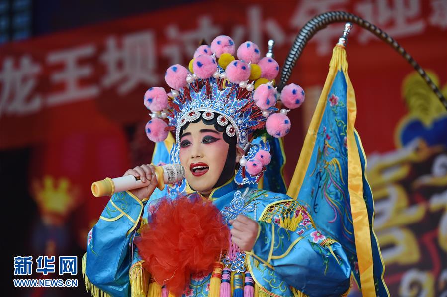 1月20日,刘玡彤在宁夏西吉县龙王坝村的舞台上表演戏歌《说唱脸谱》。临近春节,宁夏西吉县15岁的小小“花儿”刘玡彤变得忙碌起来,寒假期间她加入了龙王坝村乡民文艺演出队,队伍里的大人们都特别喜欢这个小丫头。刘玡彤擅长唱“花儿”——广泛流行于青海、宁夏、甘肃等西部省区的民歌,还在上高二的她从小到大都是学校里的文艺骨干,刘玡彤说:“只要一登上舞台,我就像变了一个人,可以忘掉烦恼。” 新华社记者 李然 摄
