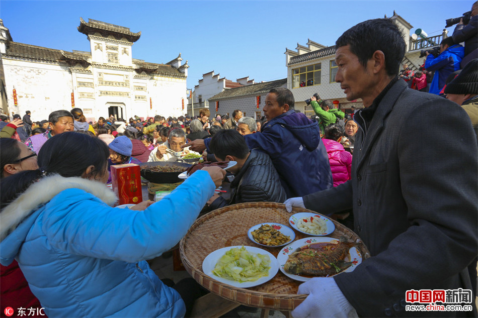 2017年1月21日,安徽青阳县陵阳镇,由安徽省摄影家协会、池州市摄影家协会主办的小年陵阳“锅子宴”活动在陵阳镇所村举行。(盛文鹏/东方IC)