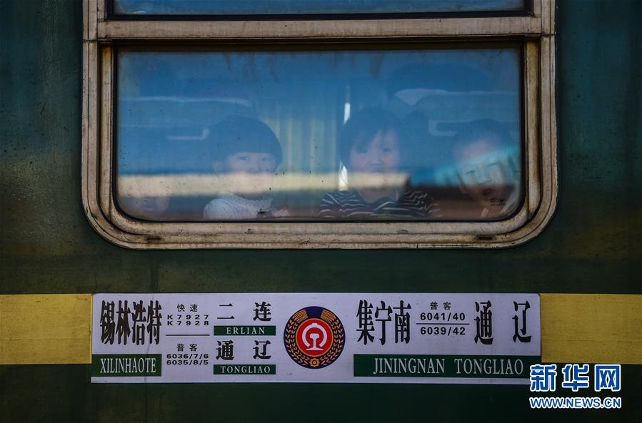 1月21日,几名小朋友在6041次列车上望向窗外。在内蒙古自治区,集宁至通辽的6041/42次是集通铁路公司管内唯一的一趟烧燃煤锅炉取暖和供水的旅客列车,列车编组8辆,沿途停靠82个车站,单程运行997公里,往返运行46小时。沿途停靠站辐射地带,是国家确定的连片扶贫区域,列车开行20年来一直坚持最惠民的票价,最低票价2.5元。因为该趟列车站站停、票价低,极大方便了沿线农、牧民出行,被沿线农、牧民亲切地称为“便民巴士”。新华社记者连振摄