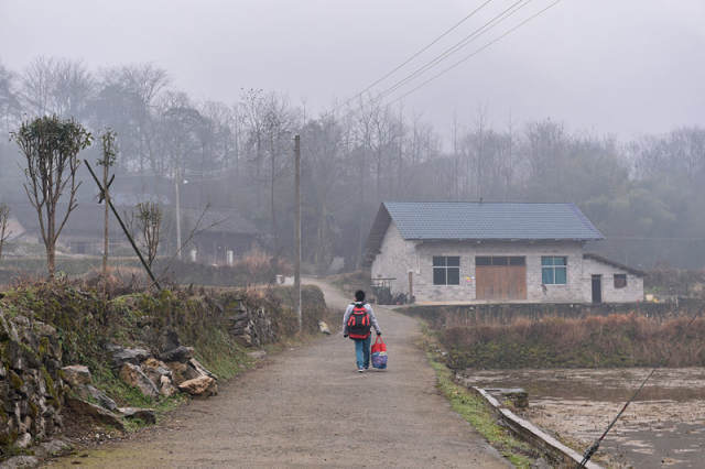 在朦胧的雨雾里,石欣向家的方向走去。