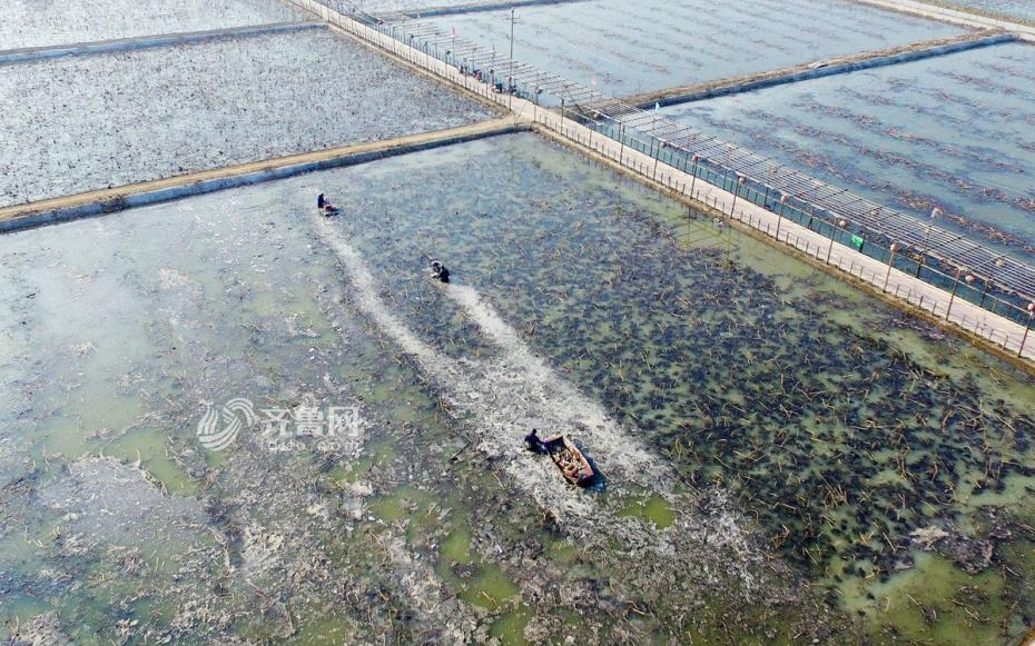 宁凡祥做采藕这项工作已经七年了,他和他的团队也成了十里八村都有名的专业采藕队。两台采藕机,一条小船,像这样的一片三亩半藕池,他们伙计四人互相配合,需要三天才能采完。(齐鲁网记者白少光 亓子涵 摄)图片来源:齐鲁网