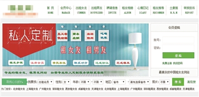 北青报记者看到,目前有多家网站专职做租友平台,网站提供的服务包括了待租女友和待租男友信息介绍、求租论坛等,同时网站还提出对交易进行担保。