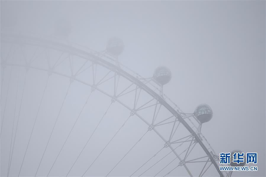 1月25日,英国伦敦的标志性建筑“伦敦眼”摩天轮被大雾笼罩。新华社/法新