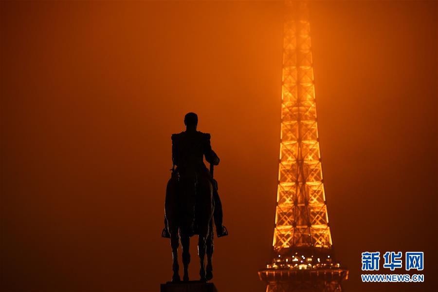 1月24日,法国巴黎的标志性建筑埃菲尔铁塔被大雾笼罩。新华社/法新
