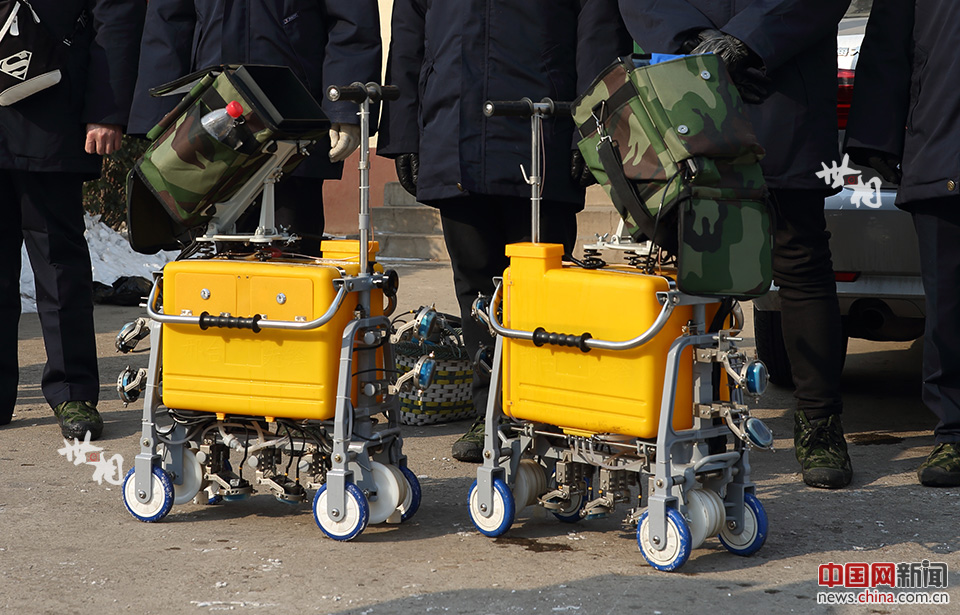 两台各40公斤重的国产钢轨探伤仪,每台需要两人操作。