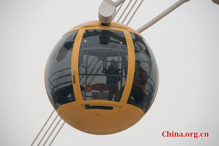 1月28日,农历鸡年大年初一,北京石景山游乐园新摩天轮在春节“洋庙会”期间开始试运行。尽管当日北京空气质量较差,游人依旧络绎不绝前来乘坐。中国网记者 陈博渊 摄