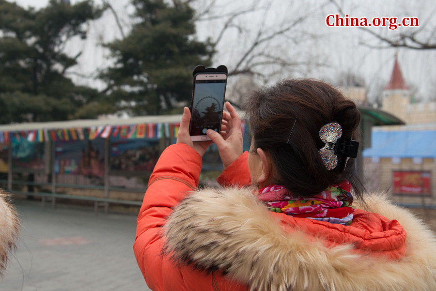 1月28日,农历鸡年大年初一,北京石景山游乐园新摩天轮在春节“洋庙会”期间开始试运行。尽管当日北京空气质量较差,游人依旧络绎不绝前来乘坐。中国网记者 陈博渊 摄