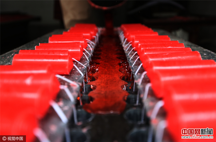 张亚飞的蜡烛厂和哥哥张亚兵的场在一个街道,他们兄弟俩每天要做大小蜡烛20多个型号十万多根。每一只蜡烛需要四道工序近半小时才能完成。西安市大街小巷销售的蜡烛大多数都是来自这里生产。视觉中国