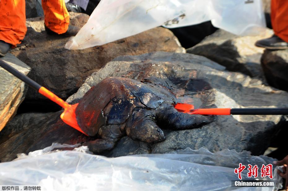 印度撞船事故漏油20吨 大量海龟死亡海岸被染黑(   / 6 )