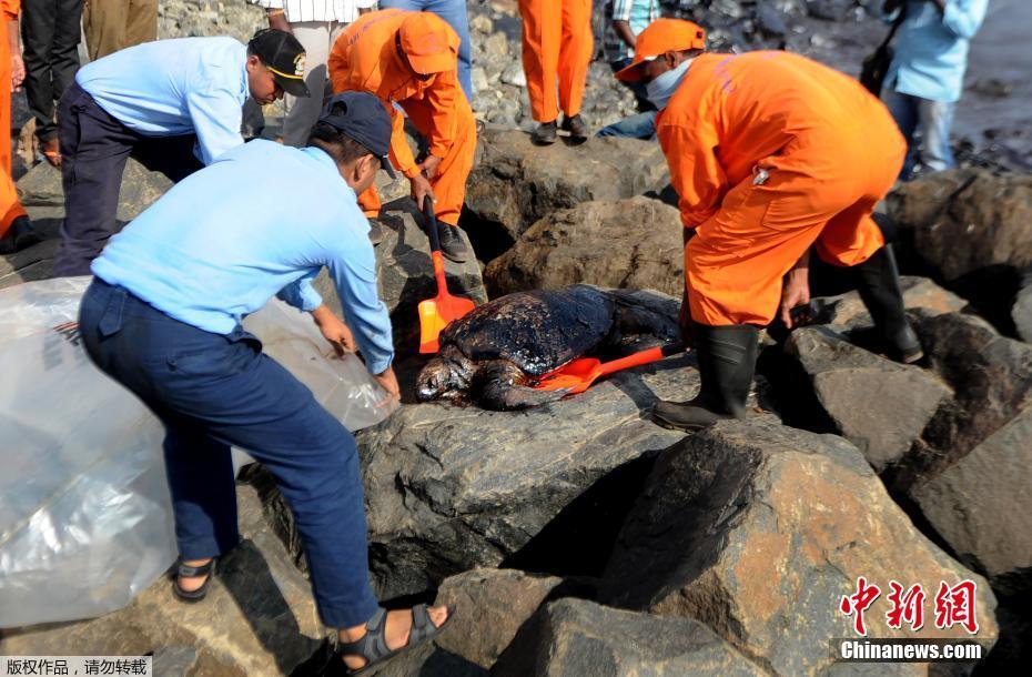 印度撞船事故漏油20吨 大量海龟死亡海岸被染黑(   / 6 )