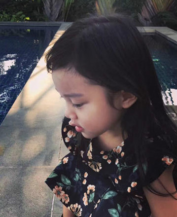 甜馨和妈妈穿同款花裙 越来越漂亮了