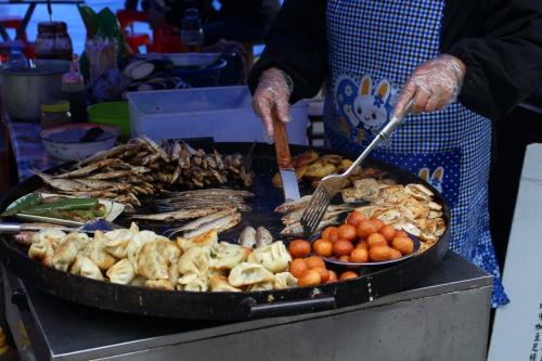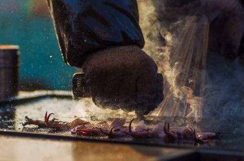 2017-01-30,河北邯郸。广府老城庙会上,摊主正在做烤鱿鱼。作者:与光影共舞