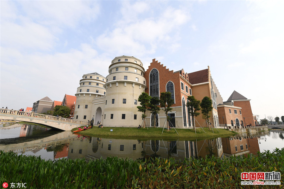 2017年2月5日,广西南宁市,明月湖畔的中国式“山寨版”欧洲风情小镇城堡建筑群。吸引了无数游人和市民参观游览,在家门口领略欧美风情,足不出户可观天下,令人震惊。(宁远/东方IC)